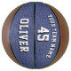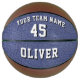 Custom Blue Leather Print Player Name Team Number Basketball. Personalise it with your team name, number and player name. The design has a blue leather print - the leather details are simulated on the design. A great keepsake to remember your favourite sport. A perfect gift for basketball players, teammates, coaches,...