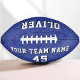 Custom Blue Leather Print Player Name Team Number Football. Personalise it with your team name, number and player name. The design has a blue leather print - the leather details are simulated on the design. A great keepsake to remember your favourite sport. A perfect gift for football players, teammates, coaches,...