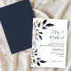 Blue Leaves with Gold Wedding Invitation