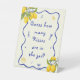 Add a fun touch to your main squeeze bridal shower theme with this Personalised Blue Lemon Bridal Shower Guess How Many Kisses Pedestal Sign! Featuring charming lemon details, this sign perfectly complements your main squeeze bridal shower lemon decor. A great addition to any lemon bridal shower theme, it’s ideal for interactive games. Perfect for lemon themed bridal shower ideas, lemon Italian themed bridal shower ideas, and summer bridal shower ideas.