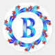 Blue Letter B Monogram Red Stars Classic Round Sticker