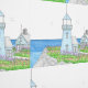 Hand Drawn Imaginary Blue Lighthouse Wallpaper