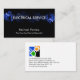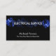 In the dark of the night, a luminous blue electrical lightning pulse streaks across the card's space, highlighting your business name "ELECTRICAL SERVICE" which you can change. At the base lies your prestigious name and slogan caption option.
