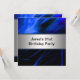Modern blue and white bright neon laser lights abstract man's twenty-first birthday party invitation.