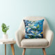 Blue Lily Floral Design With Swirling Patterns Cushion