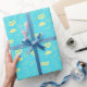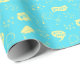 Fun and quirky wrapping paper featuring hand drawn illustration of graduation and school related motifs in blue and lime colour.