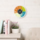 Blue Lime Orange Mosaic Modern Monogram Large Clock