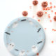 Little boo Pastel blue paper plates featuring cute ghost, and bat illustrations. Perfect for a little boy's Halloween 1st birthday or baby shower.
