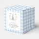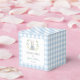 Explore adorable 'Little bunny' themed baby boy shower gift favour boxes featuring a charming blue bunny surrounded by spring flowers. Enhance the celebration with these cute and customisable favour boxes. Perfect for elegant classic spring Easter baby boy celebration.