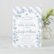 Celebrate the excitement of welcoming a baby boy with this delightful invitation adorned with delicate baby blue florals, tiny butterflies, and botanical accents, capturing the anticipation of his arrival.