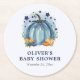 Blue Little Pumpkin Fall Custom Boy Baby Shower Round Paper Coaster