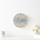 Blue Lobster Line Drawing On Sandy Beach Tan Colou Round Clock