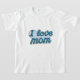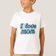 This kids' t-shirt celebrates Mother's Day with a beautiful "I love Mom" script written in elegant blue cursive letters. The design mimics delicate thread embroidery on fabric, giving it a tender, handcrafted touch. It's a lovely piece of clothing, perfect for little ones to express their love for Mom on such a special day, with style, color, and lots of affection.