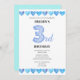 Blue Love Hearts 3rd Birthday Photo Invitation