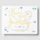 White, blue, and gold boy adoption shower guestbook personalised with the mum-to-be's name and the date of the adoption baby shower. Gold foil and white and blue heart-themed adoption baby shower guestbook for a love makes a family baby shower with custom gold foil text and little hearts in blue and gold. Personalised adoption-themed baby shower guestbook in white with little gold hearts and blue hearts and gold foil text. Ask your adoption baby shower guests to write something in this white, blue and gold heart adoption guestbook personalised with custom text for your baby boy adoption shower.