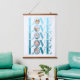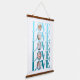 Blue LOVE photo Valentines Day wood topped hanging tapestry. It features the text "LOVE" typography in five tones of ombre teal blue colour and five photos. Some photo are curtesy of Photography © Storytree Studios, Stanford, CA
