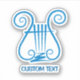 Blue lyre icon with four strings. Custom Text.