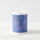 A stylish Bone China Mug with an electric blue and magenta abstract pattern, from a silkscreen print by Judy Adamson.