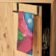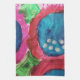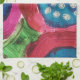 Magenta, and hot pink, with splashes of deep blue dominate this kitchen towel.