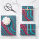 Blue & Magenta Wavy Marbling Agate Abstraction Wrapping Paper Sheet