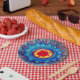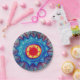 Blue mandala alike drawing on a paper plates.