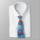 Elegant tie with blue, red and yellow mandala alike forms hand painted pattern design