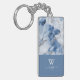 An accent keychain in dark blue, white and light blue marble liquid ink colours. The design is a dreamy romantic and elegant design with gold and silver traces like the coastal sea breeze shimmers. It looks like an abstract marmor stone texture and fluid lava at the same time. This design fits perfect in coastal homes and makes the breeze come into your room.