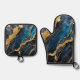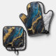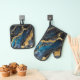 Blue Marble Pattern with Gold Oven Mitt & Pot Holder Set