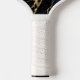 The color is black, very clean and sharp looking with custom lettering. He loves it! White lettering on a black racquet, looks perfect and clean. Classy.