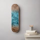 This skateboard features a stunning blue marbled design with gold glitter on either end.