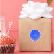 This pretty sheet of round stickers features a photograph of a marigold flower that has been manipulated to make it a stunning bright blue colour. The flower sits on a grey background.