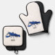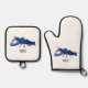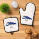 Blue marron crayfish cartoon illustration oven mitt & pot holder set