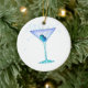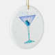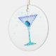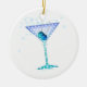 A delicious blue martini complete with 2 blue cherries on a hanging ornament