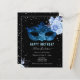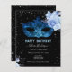 Girly glitter with fancy script name typography. Blue Roses and faux glitter border. Fancy blue masquerade mask. Great for quince celebrations. All text is adjustable. Beautiful floral and faux glitter sparkle design. 16th birthday, sweet sixteen invitations