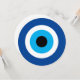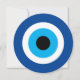 Blue Mati Evil Eye nazar round wedding invitation. Famous blue mati Greek / Turkish symbol for protection and good luck. Custom template with elegant script typography. Also great for engagements. Mediterranean-style theme.