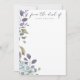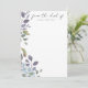 An elegant personalised note card featuring a left side decoration of watercolor blue flowers and leaves in slate blue and green leaves. The heading reads "from the desk of" in black modern calligraphy style font, with your name in black sans serif font. This makes a great gift for any female stationery lover.