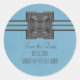 Regal and elegant Medallion Border Save the Date Stickers featuring a digital art metallic medallion and a three stripe border on a light blue background. These bold and stylish stickers are perfect for announcing your equally bold and stylish wedding. Easy to customise, simply add the details of your wedding in the text fields provided. Click on "Customise It" to find additional personalisation options such as changing fonts or text size.