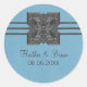 Regal and elegant Medallion Border Wedding Stickers featuring a digital art metallic medallion and a three stripe border on a light blue background. These bold and stylish wedding stickers are perfect for an equally bold and stylish wedding and are great for favours or envelope seals. Easy to customise, simply add the details of your wedding in the text fields provided. Click on "Customise It" to find additional personalisation options such as changing fonts or text size.