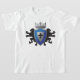 Mediaeval Lion Heraldry Boy's Ringer T-Shirt. A Coat of Arms design featuring twin lions, a shield, a crown, and a flir-de-lis. All of which were very symbolic during the mediaeval ages in Europe. Heraldry had depictions of powerful creatures, such as lions, dragons, and griffins, on their armour and weapons. It was a way to identify combatants on the battlefield.