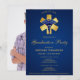 A professional chrome metallic 3d interpretation of the classic caduceus symbol featuring an elegant blue caduceus in front of a gold star cross on a festive blue background. All text can be easily customized to suit your celebration. The back is designed to showcase your photo, but it can also be removed if you prefer a clean, blank page. This eye-catching and professional design is perfect for announcing your medical graduation and inviting friends and family to celebrate this special milestone.