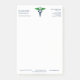 A modern interpretation of the classic caduceus symbol with a metallic blue rod and snakes, green stylised wings and a round glass plate with a green cross symbol. This eye-catching and professional design is perfect for doctors, medical professionals, clinics or anyone working in healthcare. Customisable with your own name, title and contact information.