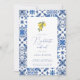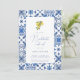 This elegant invitation features intricate blue tile patterns reminiscent of the captivating landscapes of the Mediterranean coast. Infused with the refreshing spirit of citrus, delicate illustrations of lemons and oranges grace the invitation, creating a touch of zestful celebration.