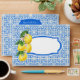 This gorgeous blue Mediterranean tile and citrus lemon design is part of a co-ordinating Bridal Shower suite.
