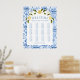Experience the romance of our elegant seating chart poster, inspired by the timeless beauty of Italian Mediterranean porcelain. Featuring a captivating design with watercolor lemon branches adorning a boho arch and complemented by a blue porcelain tiles pattern, this seating chart accommodates up to 12 tables. Let this charming poster add a touch of sophistication to your wedding decor. Explore our collection for more exquisite wedding stationery options to elevate your special day.