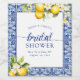 This bridal shower invitation features a bright blue theme with citrus.