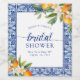 This bridal shower invitation features a bright blue theme with citrus.