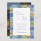 Blue Mediterranean Tile and citrus photo wedding Invitation