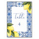 Welcome to our "Blue Mediterranean Tile and Citrus Table Number" – a perfect blend of coastal elegance and vibrant citrus allure, adding a touch of sophistication to your wedding reception. Embrace the timeless beauty of the Mediterranean with intricate blue tile patterns that grace each table number, evoking the charm of coastal landscapes and tranquil blue waters.
