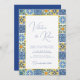 The Blue Mediterranean Tile and Citrus Wedding Invitations feature a stunning tile-inspired design in shades of blue that evokes the tranquillity of the Mediterranean Sea. The intricate patterns exude a sense of timeless beauty, while the vivid citrus accents add a burst of energy and warmth.