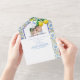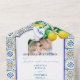 For your wedding day, choose this colourful, elegant, all-in-one wedding invitation featuring 2 photos of the lovely couple. Featuring beautiful hand painted watercolor blue and yellow ceramic tiles in Mediterranean style, and a trendy watercolor crest decorated with lemons fruits and flowers. The card includes the couple's monograms, a user-friendly RSVP QR code and links to your wedding website. Follow the instructions to personalise the invite with your wedding details. Prepare in advance the wording in a separate document, and copy and paste the info. ★★★ For MATCHING ITEMS, please check my collection. For questions and special orders, kindly message via Zazzle Chat. Thank you!